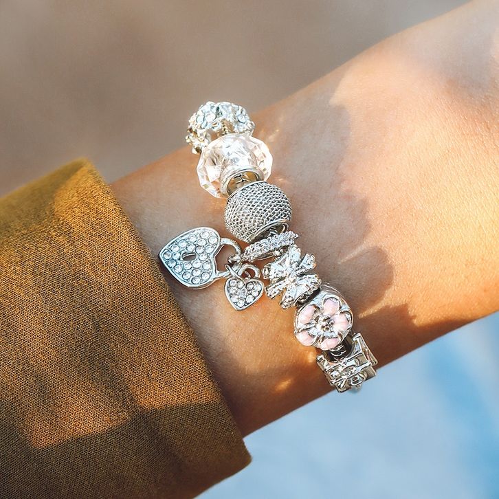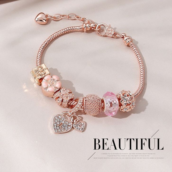 Gelang Manik-manik Mahkota Hati Wanita Kualitas Tinggi Ukuran Dapat Disesuaikan