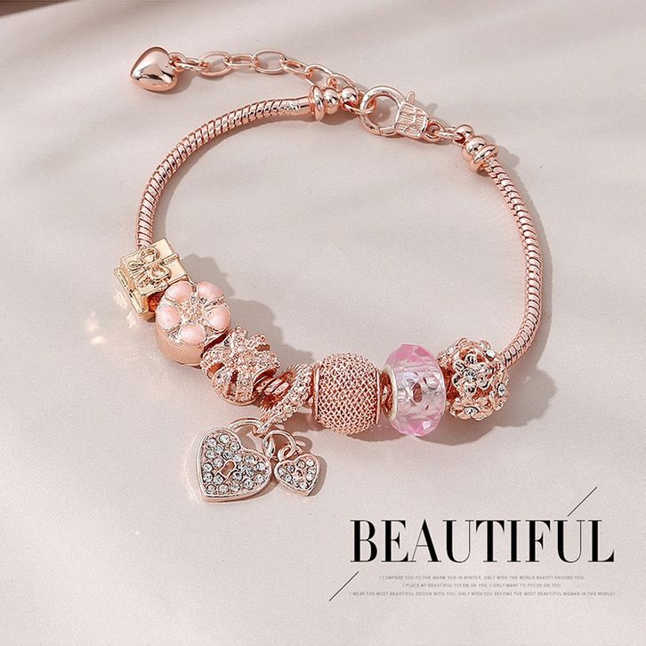 Gelang Manik-manik Hati Merah Muda Model Korea Baru Dengan Ukuran Disesuaikan Untuk Wanita Bracelets
