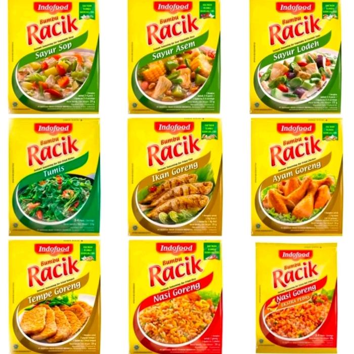 RACIK AYAM GORENG, RACIK IKAN GORENG, RACIK NASI GORENG, RACIK NASI GORENG EXTRA PEDAS, RACIK SAYUR ASEM, RACIK SAYUR LODEH, RACIK SAYUR SOP, RACIK TEMPE GORENG, RACIK TUMIS