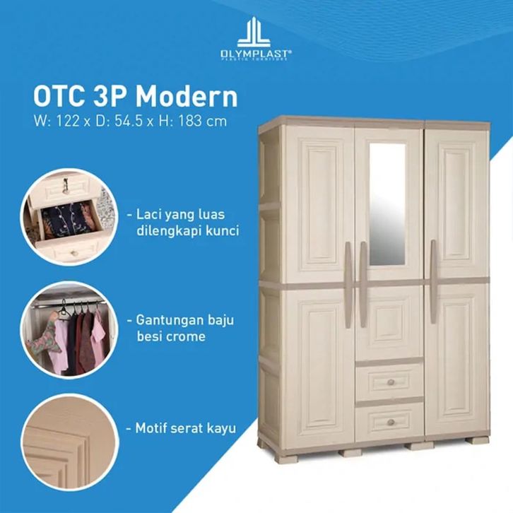 Olymplast Lemari Pakaian Plastik Transform Cabinet Modern 3 Pintu - OTC 3P Modern