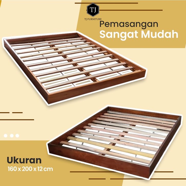 Ranjang Kayu Sorong Tanpa Kaki Solid Uk 90 100 120 160 Dan 180 Minimalis Termurah By - Tj.Furniture