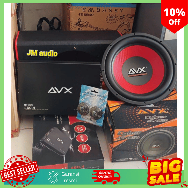 Paket audio mobil,power 4ch avx,sub 12in avx,box 12in,bunus twiteer