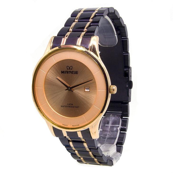 Jam Tangan Pria Mirage Analog Formal Kasual 2Jarum 8670 M Hitam List Rose9old Tanggal Aktif Stainles