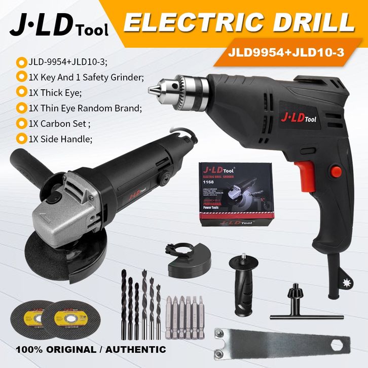 JLD Mesin Bor Listrik 10mm J10-3 + Jld Gerinda 4inch J9954c [Paket 2item] Electric Drill 10mm Mesin Gerinda