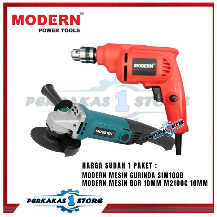 M -ODERN Mesin Bor listrik 10mm M2100C + Gerinda 4Inch SIM-100B [PAKET 2ITEM] Electric Drill 10mm mesin gerinda