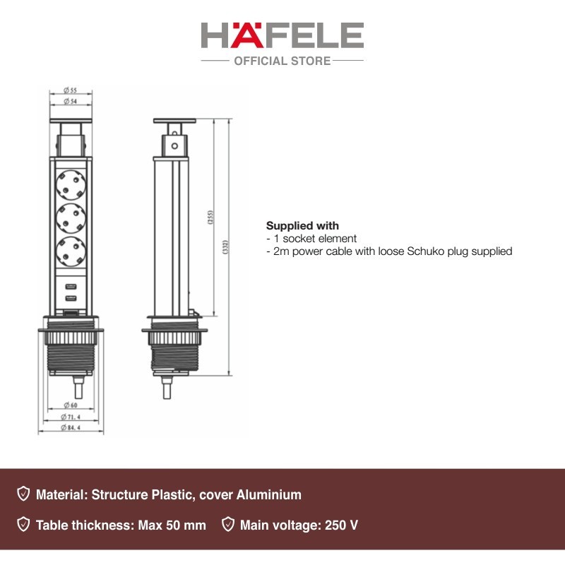 Hafele Pop-Up Tower Socket - Colokan Listrik - Ø60 mm