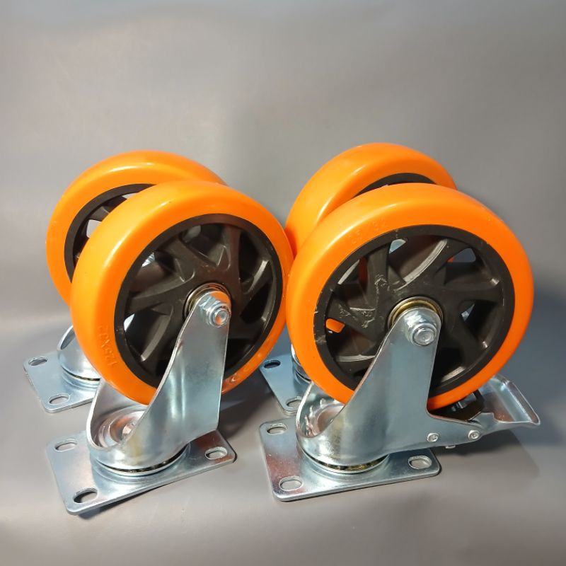RODA PU ETALASE ORANGE 5 INCH SET 4 PCS ( 2 REM + 2 HIDUP )