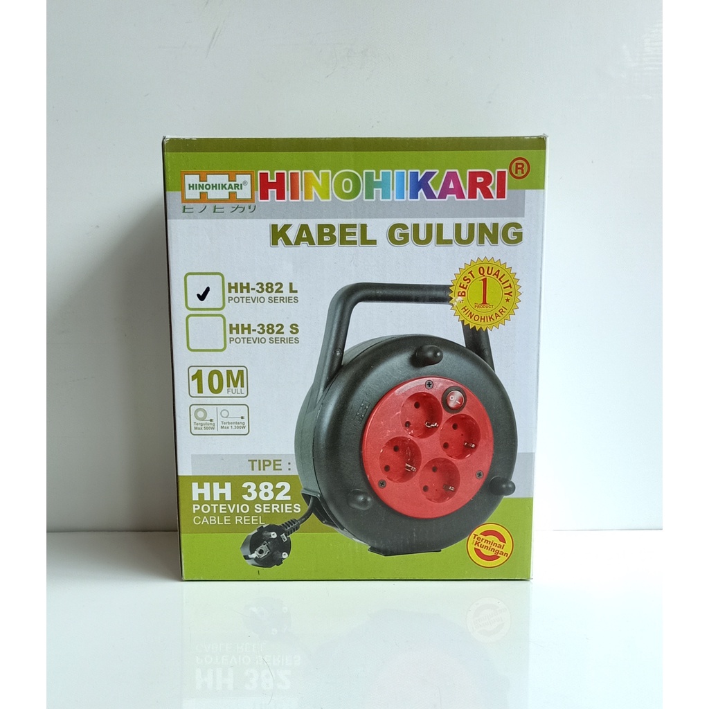 HINOHIKARI Box Kabel Gulung Roll 4 Lubang Lampu / Saklar + Kabel 10 Meter HH 382 S / L Lamp / Switch Standar SNI Warna Random