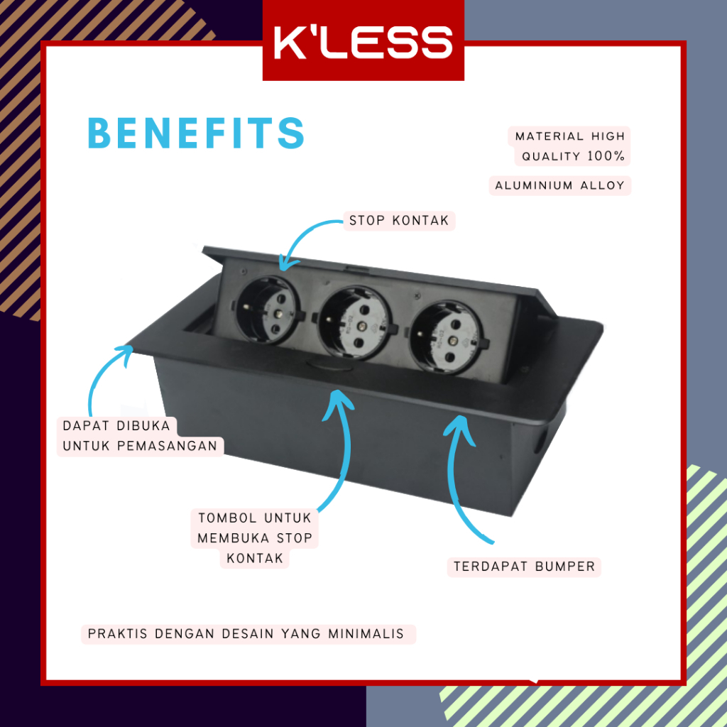 Stop Kontak Meja Meeting Tanam 3 Socket Soft Touch Pop UP System