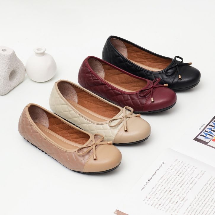Amazeus ALYSSA Flat Shoes Pita Wanita Embossed Hitam Sepatu Kerja Sepatu Kasual Sepatu wanita Flatshoes Sepatu Flat Sepa