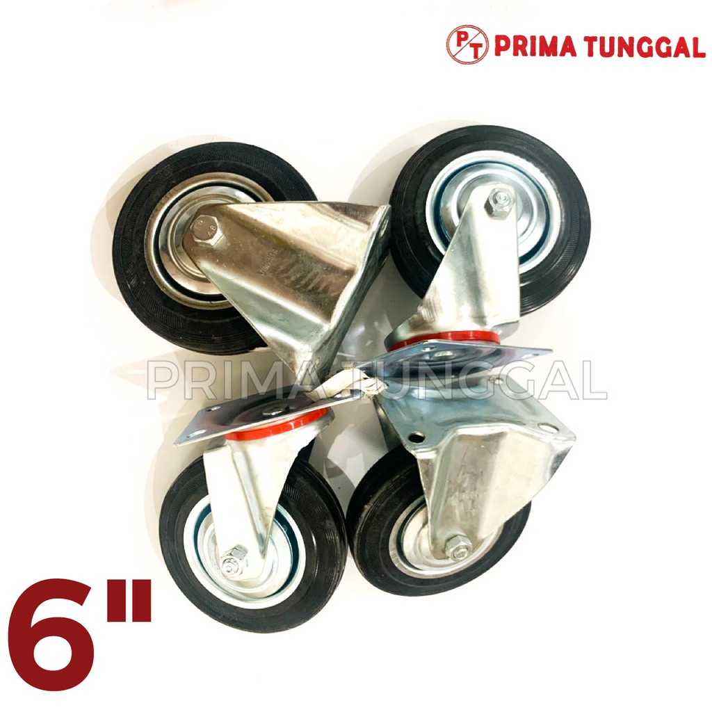 Roda Gerobak Karet 6" Inch 2 Hidup 2 Mati Harga 1 Set 4 PCS Roda Troli Trolley
