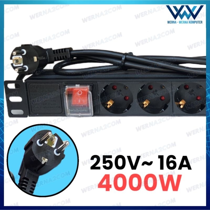 Power Distribution Unit PDU Rackmount Server 8 Outlet 16A 4000W German Standard Socket Anti Petir