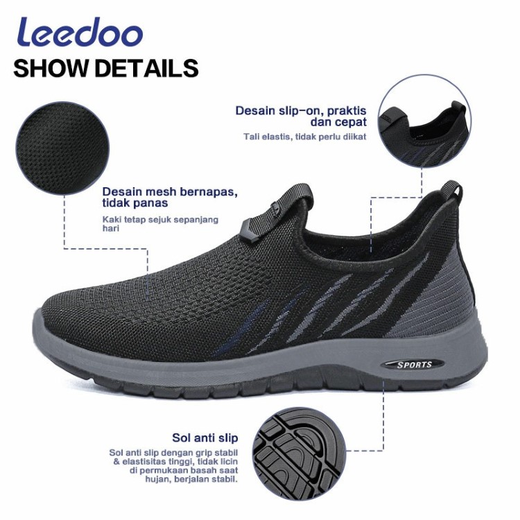 LEEDOO - Sepatu Pria Sneakers Original Terbaru MR181 Sepatu Sneakers Slip On Casual Cowok Fashion Kekinian Kualitas ORI