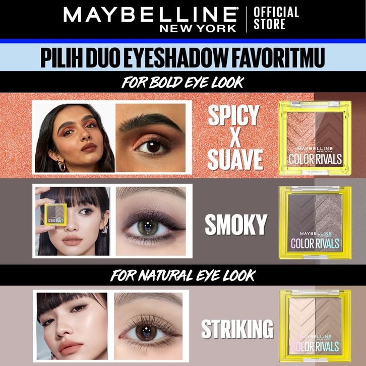 [Mall] Maybelline Color Rivals Duo Shadow Eyeshadow Waterproof Pigmented Glitter Tekstur Tahan Seharian Easy to Blend