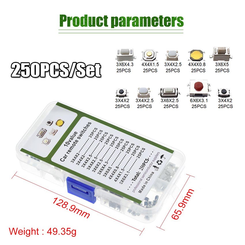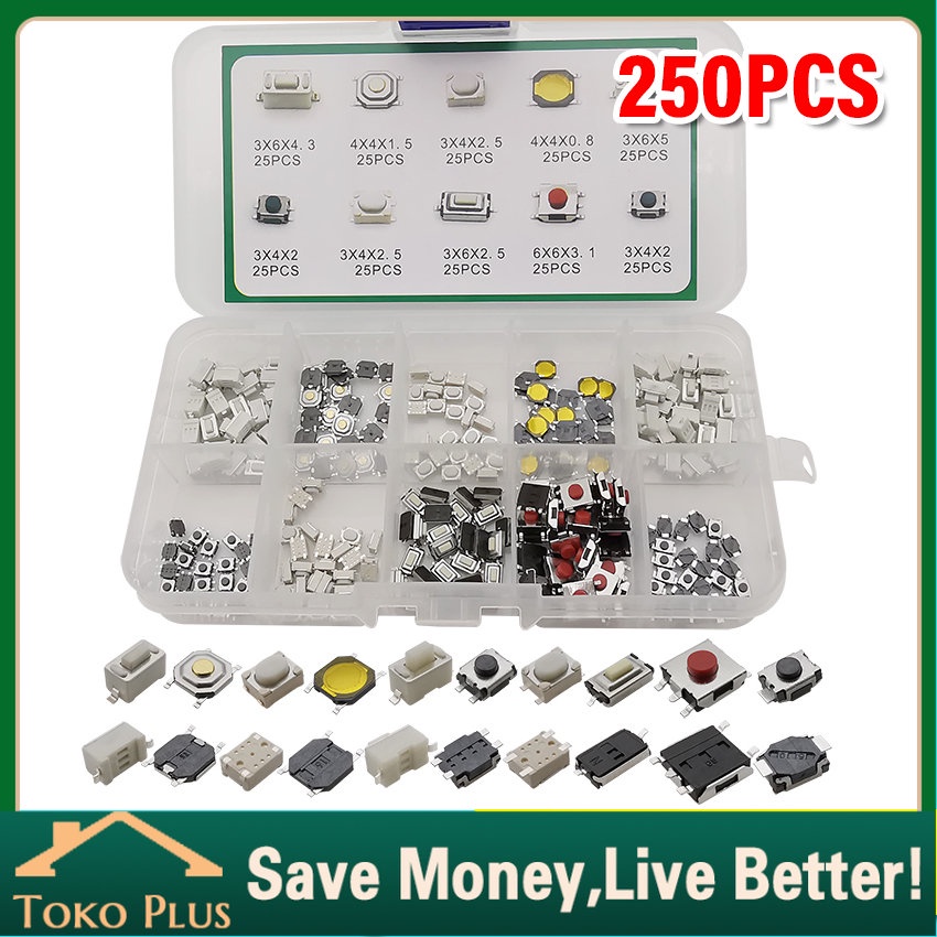 250Pcs Tombol Tekan Tactile 10 Tipe Untuk Remote Control Mobil