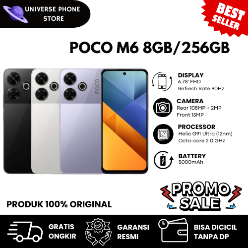 POCO M6 (8GB/256GB) | KAMERA UTAMA 108 MP KELAS PRO | RAM 16 GB BATERAI 5.030 MAH | GARANSI RESMI