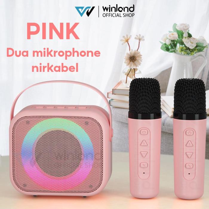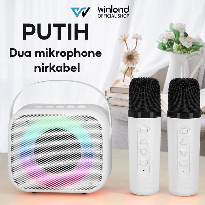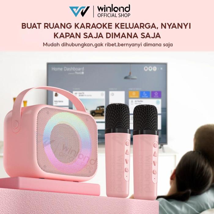 Winland speaker karaoke bluetooth mini full bass portable wireless 2 mic (Dapat terhubung ke HP/TV)