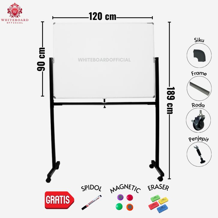 Papan Tulis Papan Tulis Sekolah SAKANA Papan Tulis White Board 90x120cm / Whiteboard Magnet Standing Praktis untuk Ruma
