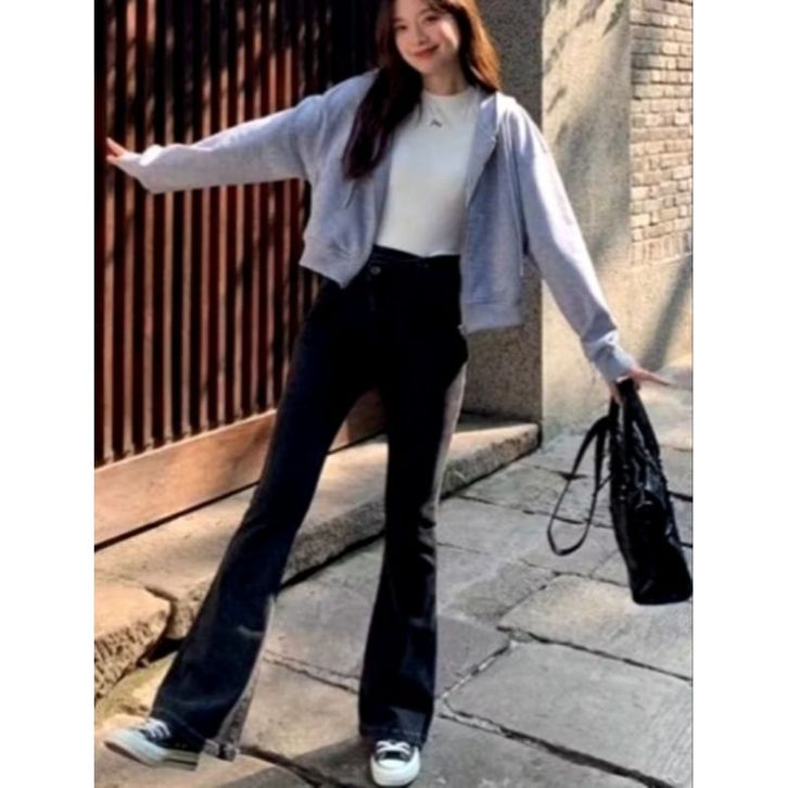 Celana Cutbray Jeans Wanita Highwaist Loose stretch Kekinian Voll 2