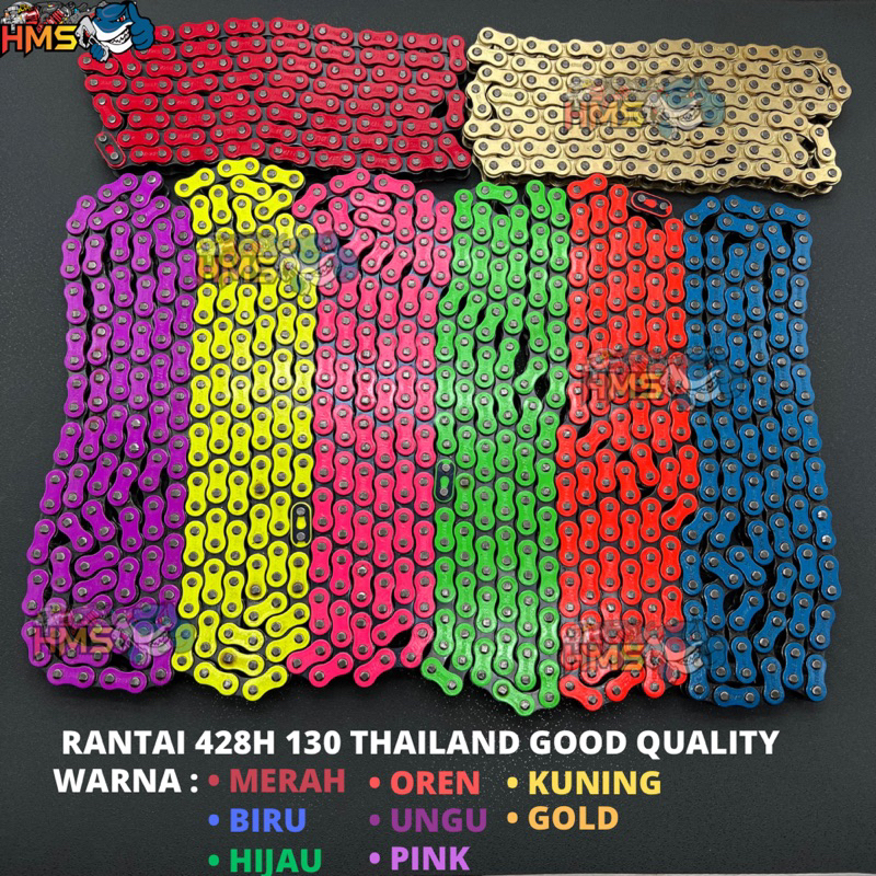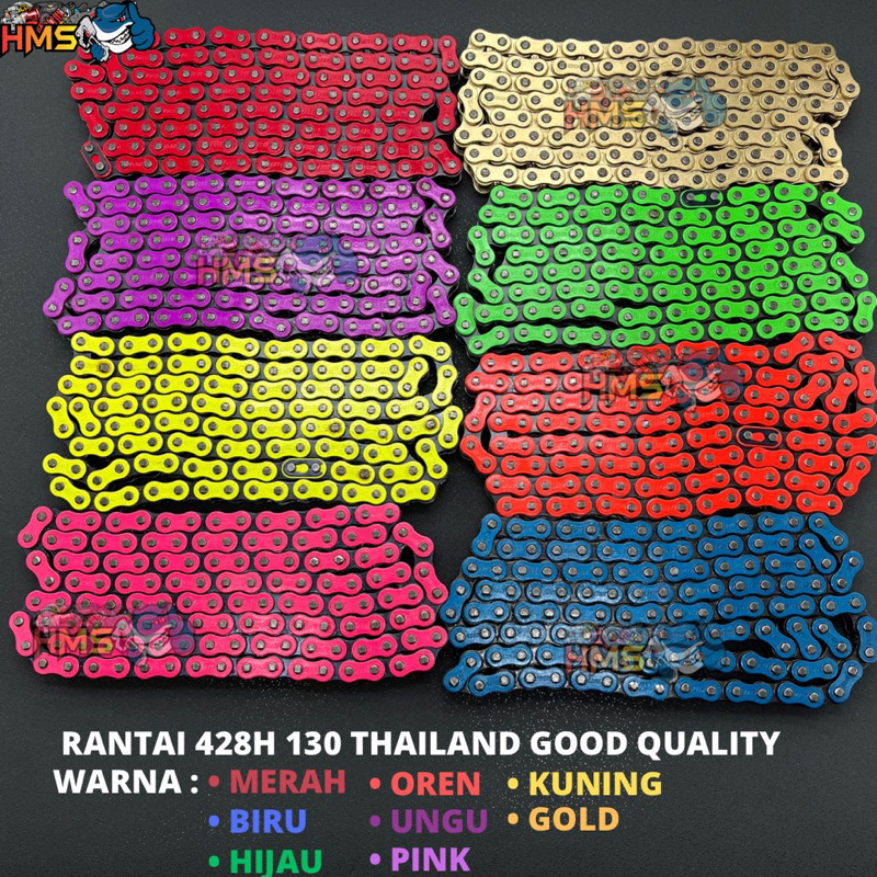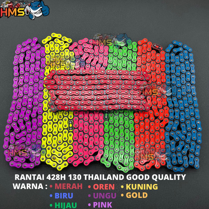 RANTAI 428 H 428H 130L THAILAND BISA BUAT GEAR SSS 428 TEBAL WARNA BIRU KUNING HIJAU PINK UNGU MERAH KUNING OREN kuning mengkilap kuning mengkilap THAILAND