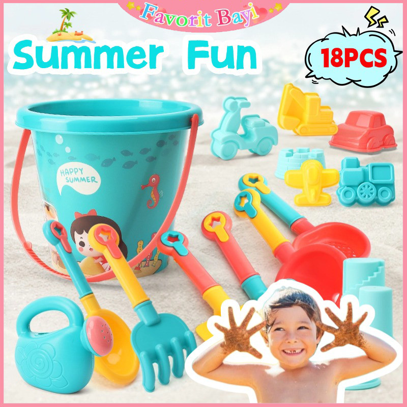 18 PCS Mainan Set Anak Anak Untuk Pasir Di Pantai / Mainan Mobil Pasir / Beach Sand Toys