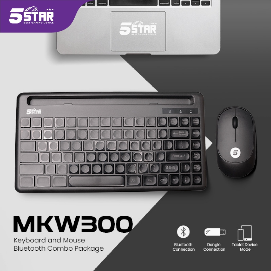 5Star MKW300 Combo Keyboard& Mouse Dual Mode Wireless & Bluetooth / Multi Device for Windows, iOS, Mac, Android