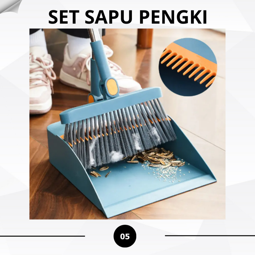 Sapu Pengki Set Sapu dan Pengki Lipat Serbaguna Alat Pembersih Lantai Otomatis Sapu Lantai Pengki Set Dengan Serok