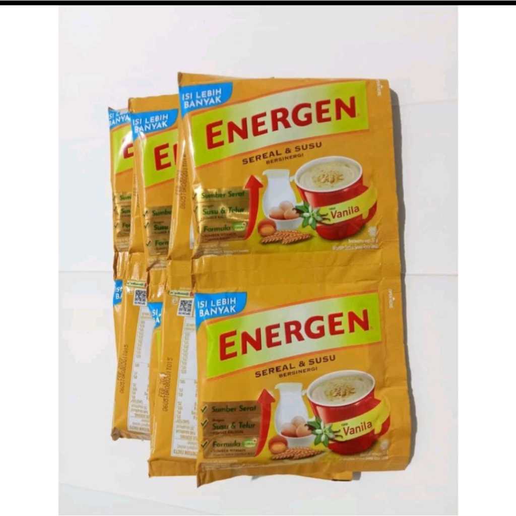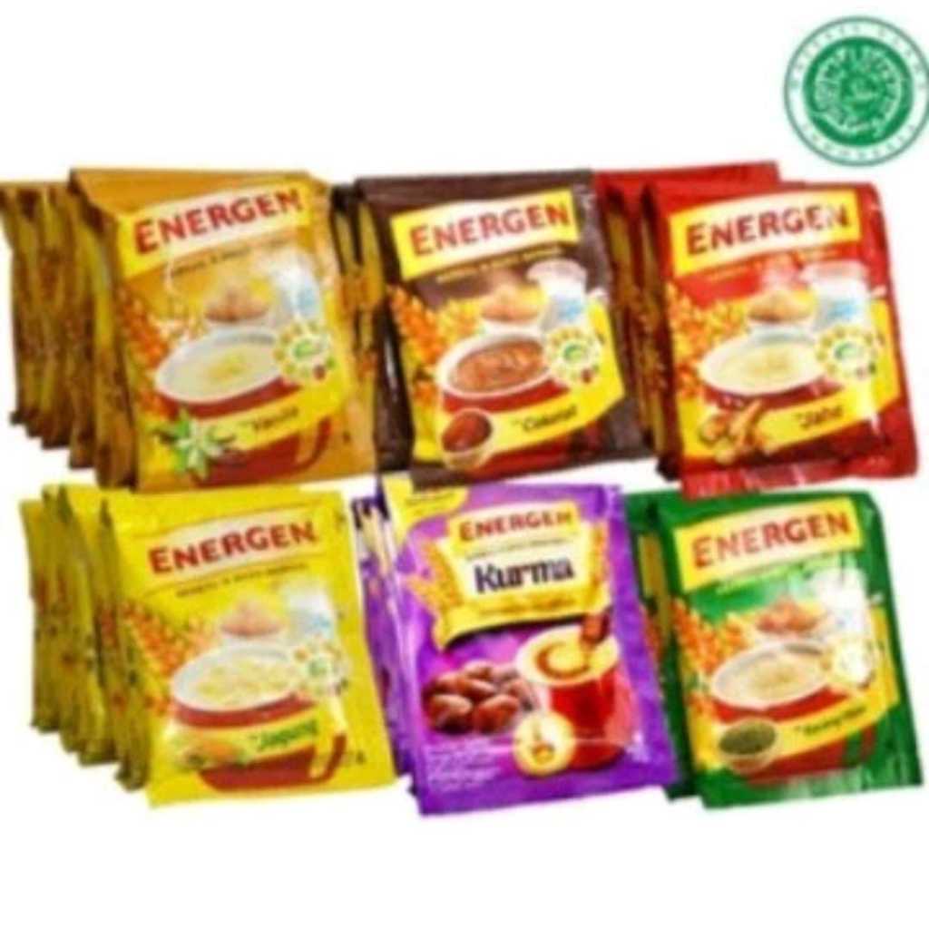 Energen Vanila 10pcs, Energen Coklat 10pcs, Energen Kcngijo 10pc, Energen Kurma 10pcs, Energen Jahe 10pc, Energn Champion 10pc, Energen Vanilla 5pcs, Energen Coklat 5pcs, Energen Kcngijo 5pcs, Energen Kurma 5pcs, Energen Jahe 5pcs, Energen Campion 5pcs