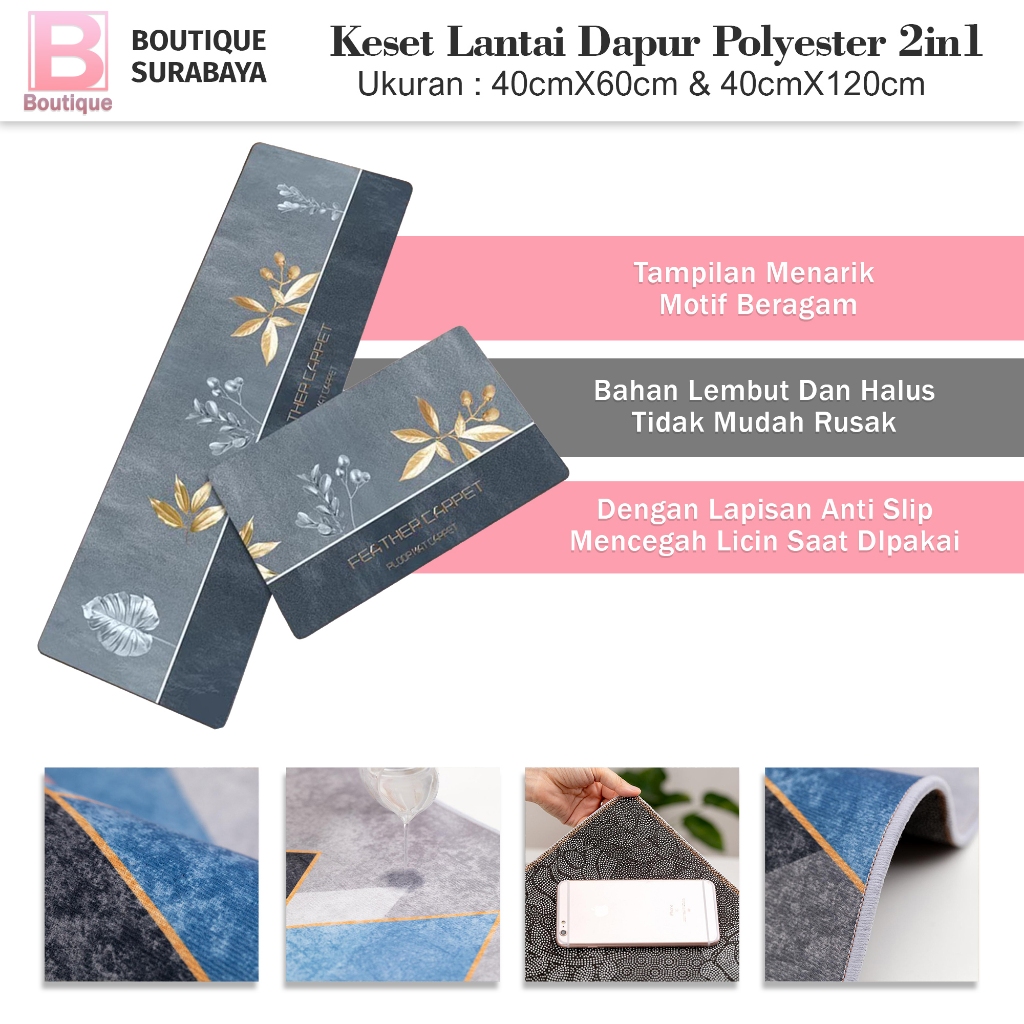 Boutique - Keset Dapur Polyester 2in1 Anti Slip TERBARU Alas Lantai Kamar Mandi 40x60CM & 40x120CM