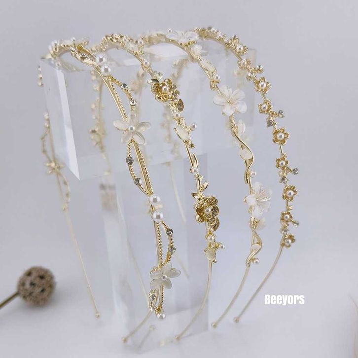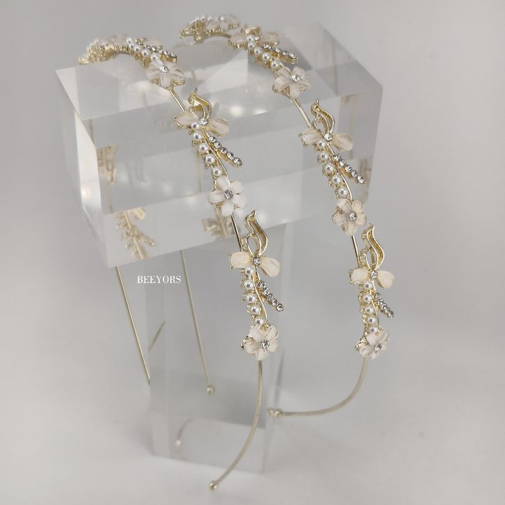 PROMO Florist Light Gold Headband / Bando Anak Dewasa Anggun Elegan Permata Bunga - BT17