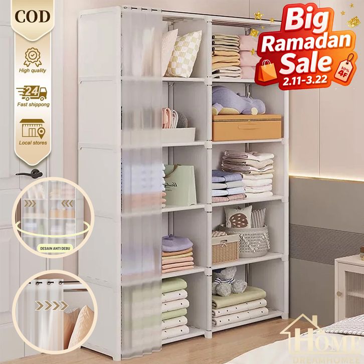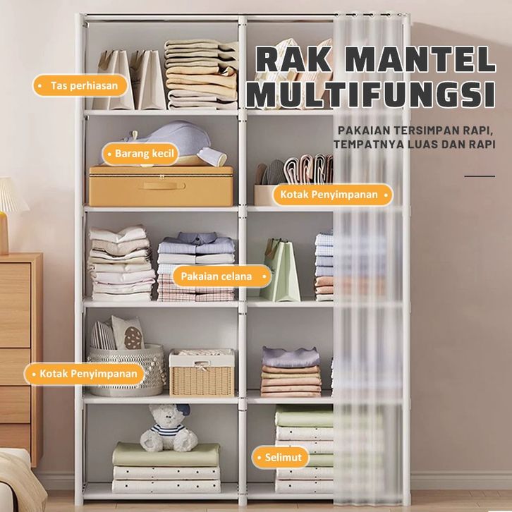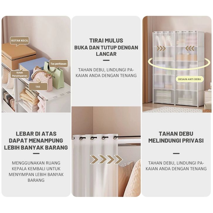 Lemari Pakaian Sederhana Storage Rack Wardrobe Dengan Tirai Wardrobe Portable Rak Serbaguna Baju Lemari Penyimpanan Taha