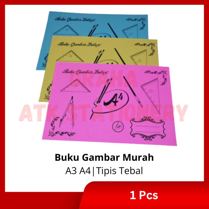 1 Pcs Buku Gambar A3 A4 Deluxe / Buku Sketsa Mewarnai / Drawing Book A3 A4 Deluxe Tipis Tebal