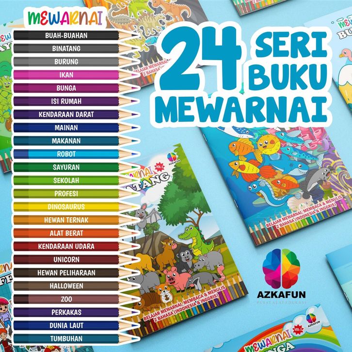 PAKET 24 BUKU MEWARNAI VOL 1 Full colour - buku mewarnai anak