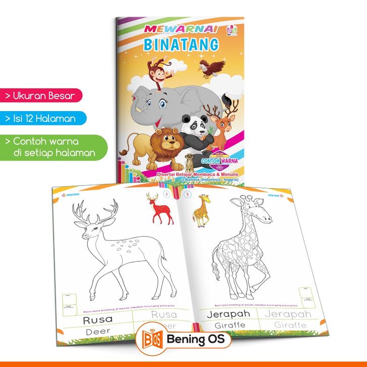 Buku mewarnai anak TK PAUD SD dengan contoh warna