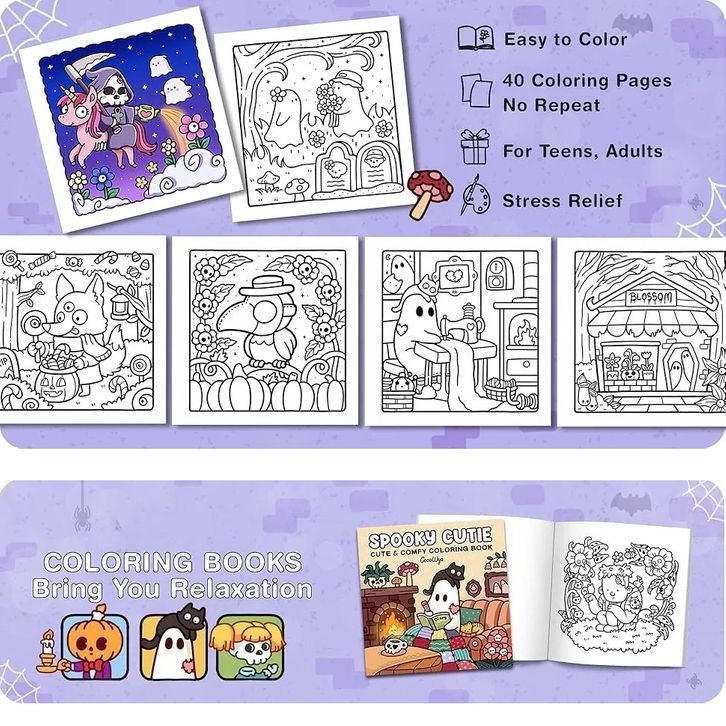 Spooky Cutie,Colo Book Paperback Buku lukisan ,Buku Mewarnai untuk Menghilangkan Stres,anak-anak