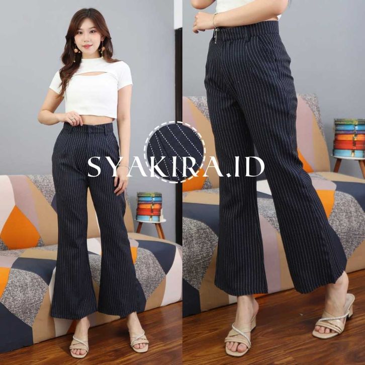 Celana Flare Pants Stripe Bangkok Kekinian - Cutbray Highwaist Pants Murah - Celana Wanita Semi Cutbray