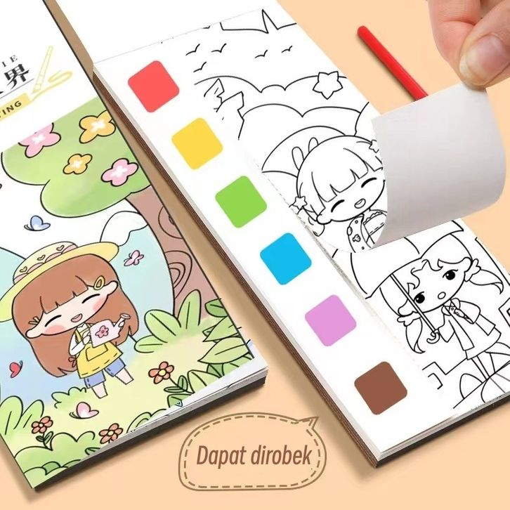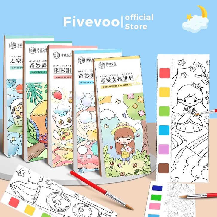 FIVEVOO Buku Cat Air/ Buku Cat Mewarnai/ Buku Mewarnai/ Watercolor Painting Book Colo