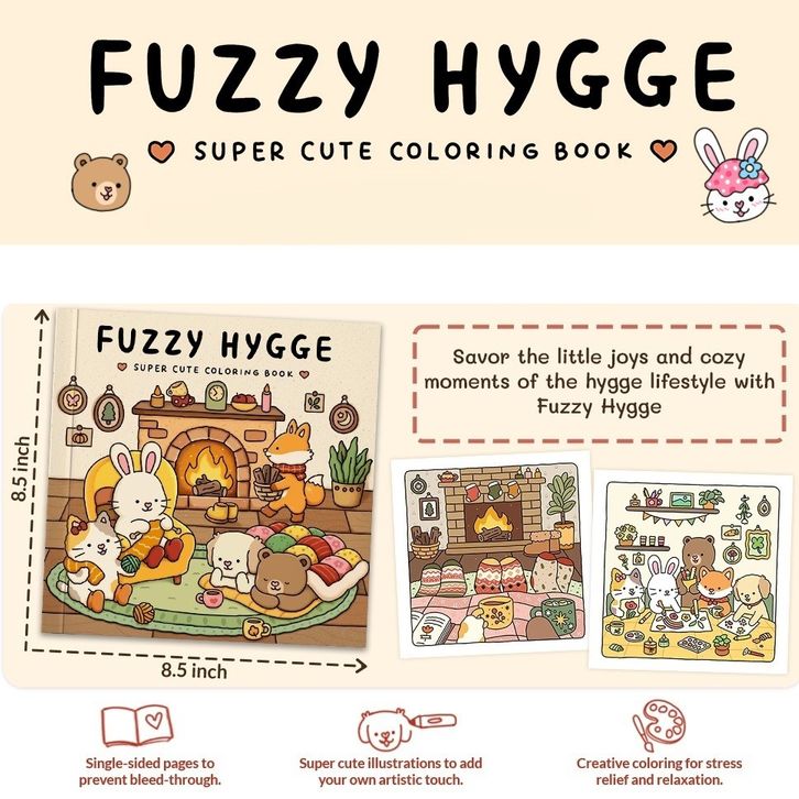 Buku Mewarnai Fuzzy Hygge - 44 Ilustrasi Orisinal untuk Anak & Dewasa, Aktivitas Seru &