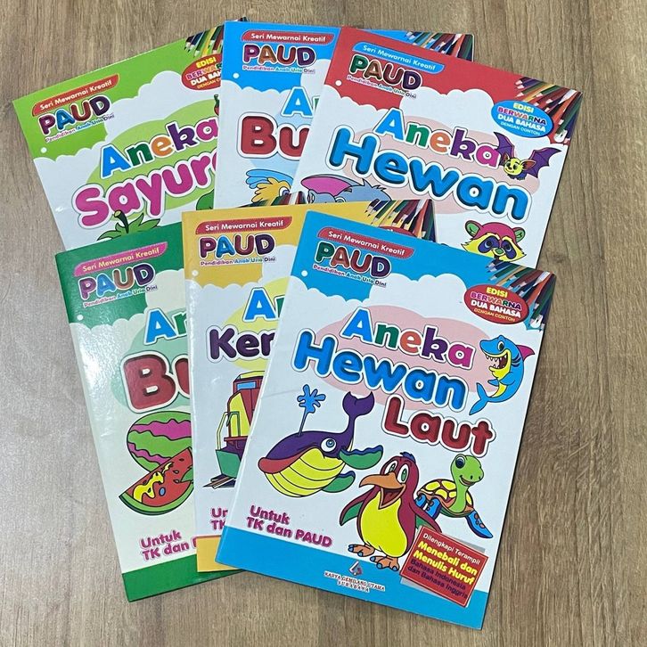 PAKET 6 Buku MEWARNAI Indonesia Inggris 32 Halaman Berwarna Acitvity Book Buku Aktifitas