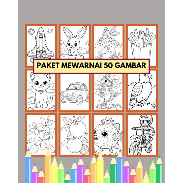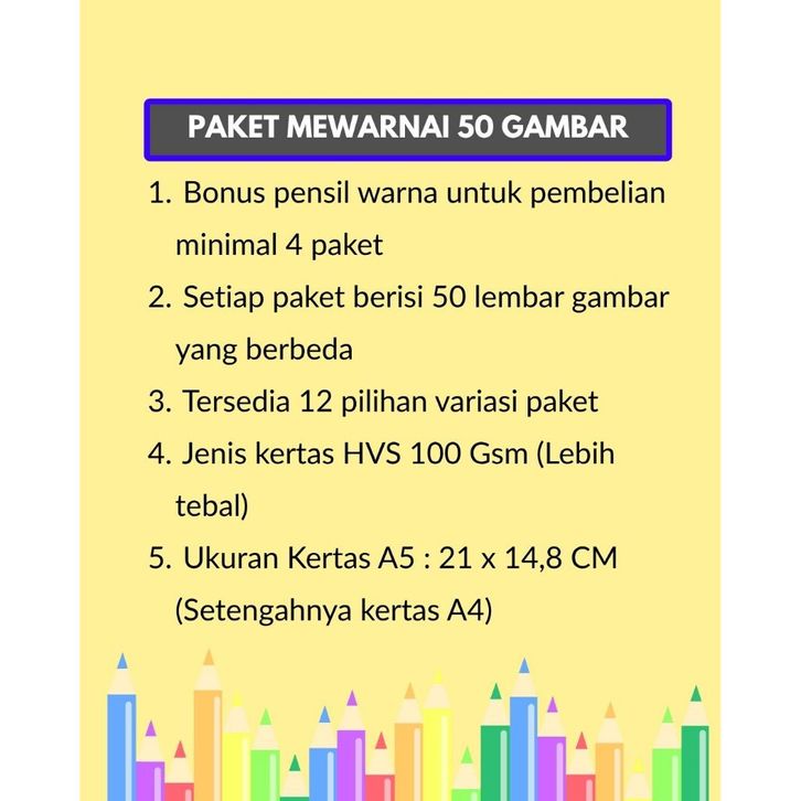 Paket 50 Lembar Mewarnai Ukuran A5 / Buku Gambar Mewarnai / COLO BOOK / Untuk SD TK PAUD