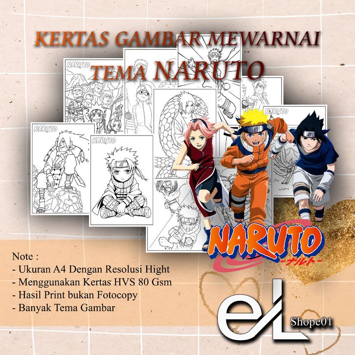 15 - 50 Lembar Gambar Mewarnai Tema NARUTO