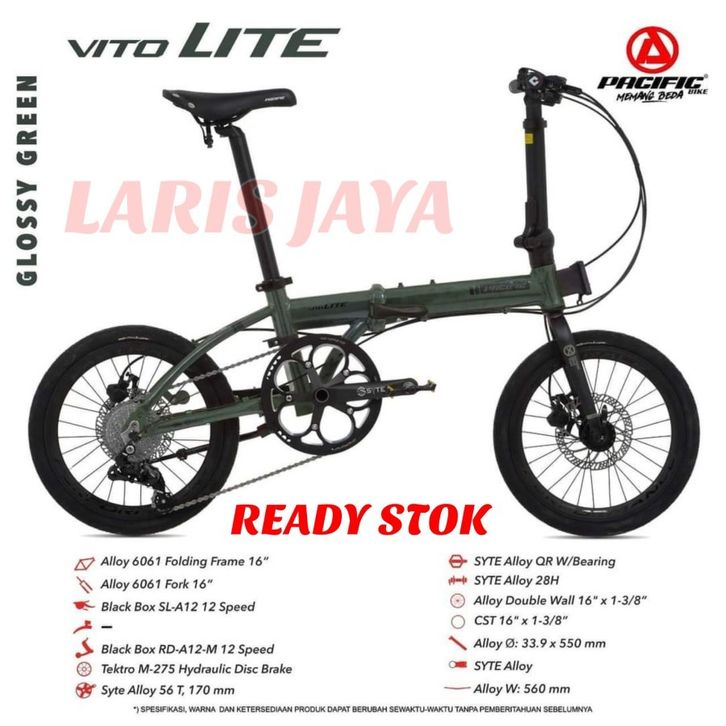 BONUS BELL PROMO sepeda lipat 16 inch sepeda pacific lipat ukuran 16 PACIFIC VITO LITE 12 SPEED