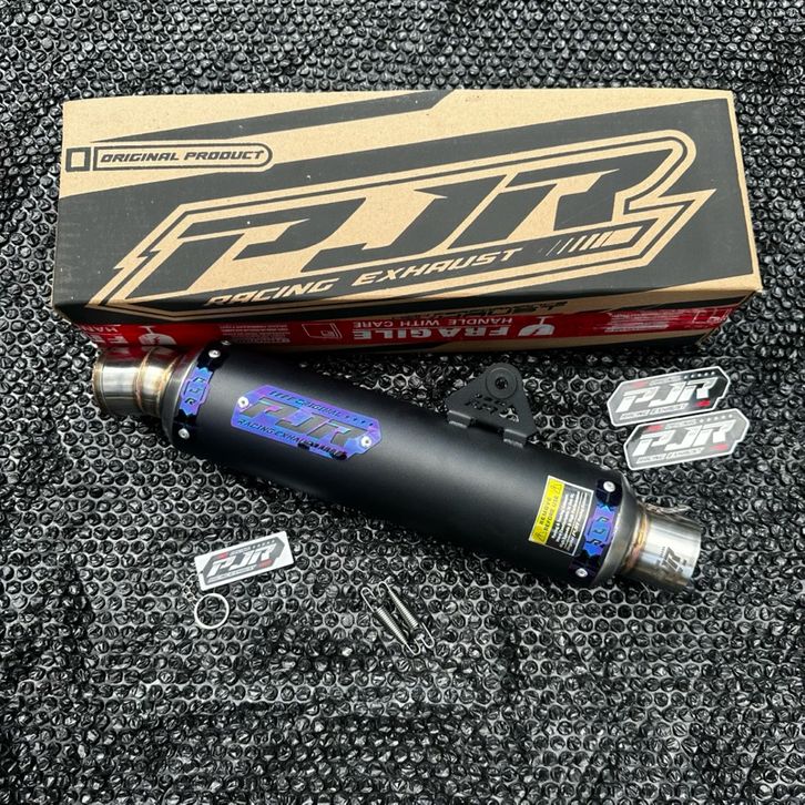 Knalpot PJR Jenong Grade A Black Coating Emblem Blue Titanium Inlet 50mm