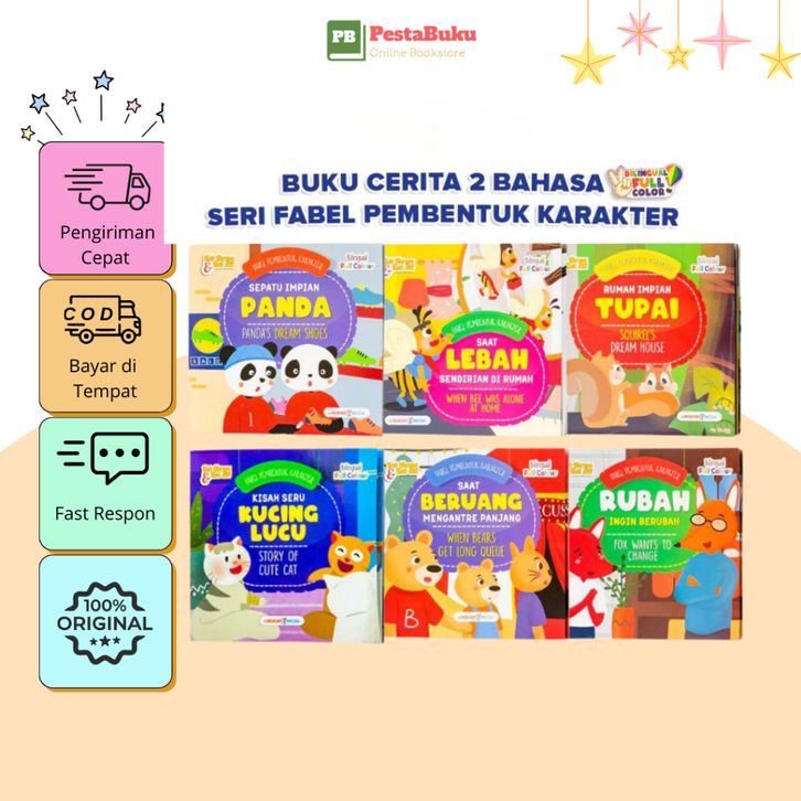 Ayam Brtanduk CA New, Ayam Terbang CA New, Beruang Adil CA New, Beruang Mengantri, Buaya Rakus CA New, Frogy Angkuh CA New, Gigi Harimau CA New, Katak Nakal CA New, Kelelawar CA New, Kelinci Takut CA New, Kerbau Buaya CA New, Kisah Seru Kucing, Kupu Cantik CA New, Lebah Semut CA New, Lebah Sendirian/LM, Merpati Semut CA New, Monyet Cerdik CA New, Raja Singa CA New, Rubah Ingin Berubah, Rubah Malasa CA New, Rumah impian Tupai, Semut CA New, Sepatu Impian Panda, Srigala Bodoh CA New, Srigala Kmbing CA Nw