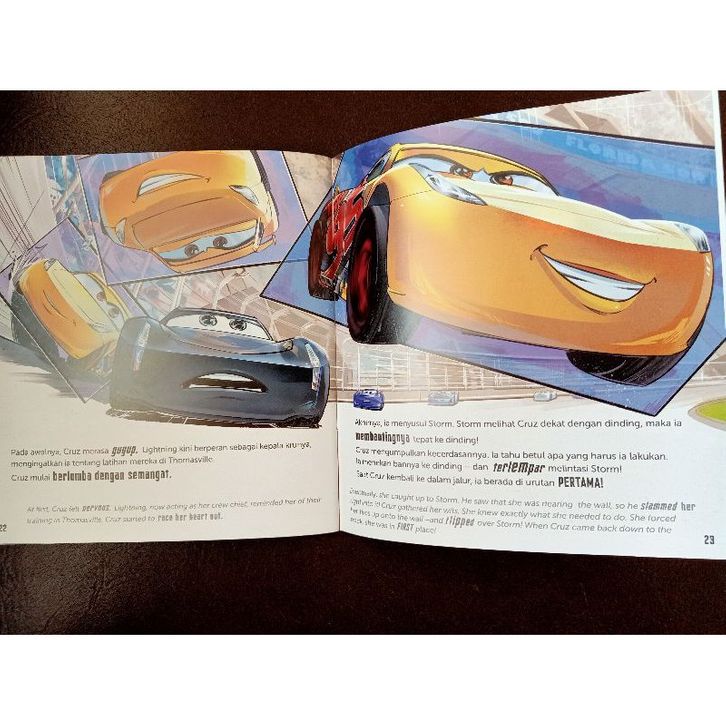 Buku cerita anak Disney Cars 3 " Dikuasai oleh Storm" Bilingual + Bonus stiker