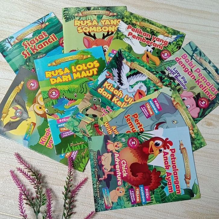 isi 5buku Buku cerita bergambar seri fabel dongeng teladan cerita hewan bilingual murah