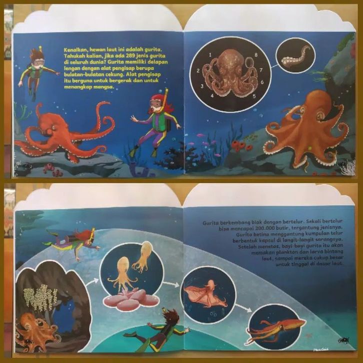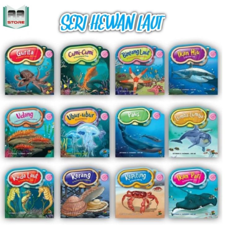 Bintang Laut, Cumi-Cumi, Gurita, Ikan Hiu, Ikan Pari, Kepiting, Kerang, Kuda Laut, Lumba Lumba Si Ikan, Paus, Ubur Ubur, Udang