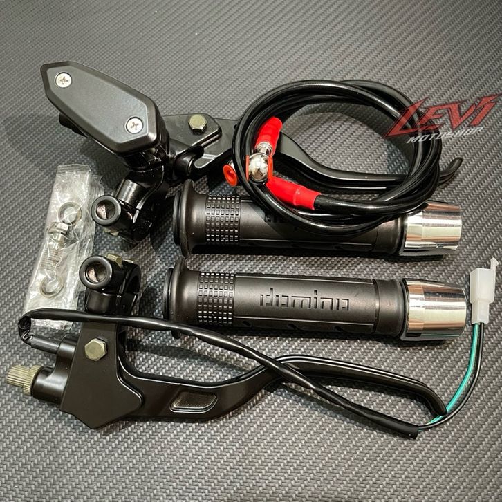 Paket 4in1 Master Rem Tabung Tipe Oval + Handgrip Sisik + Jalu Stang Chrome + Selang Rem 95cm Universal Motor