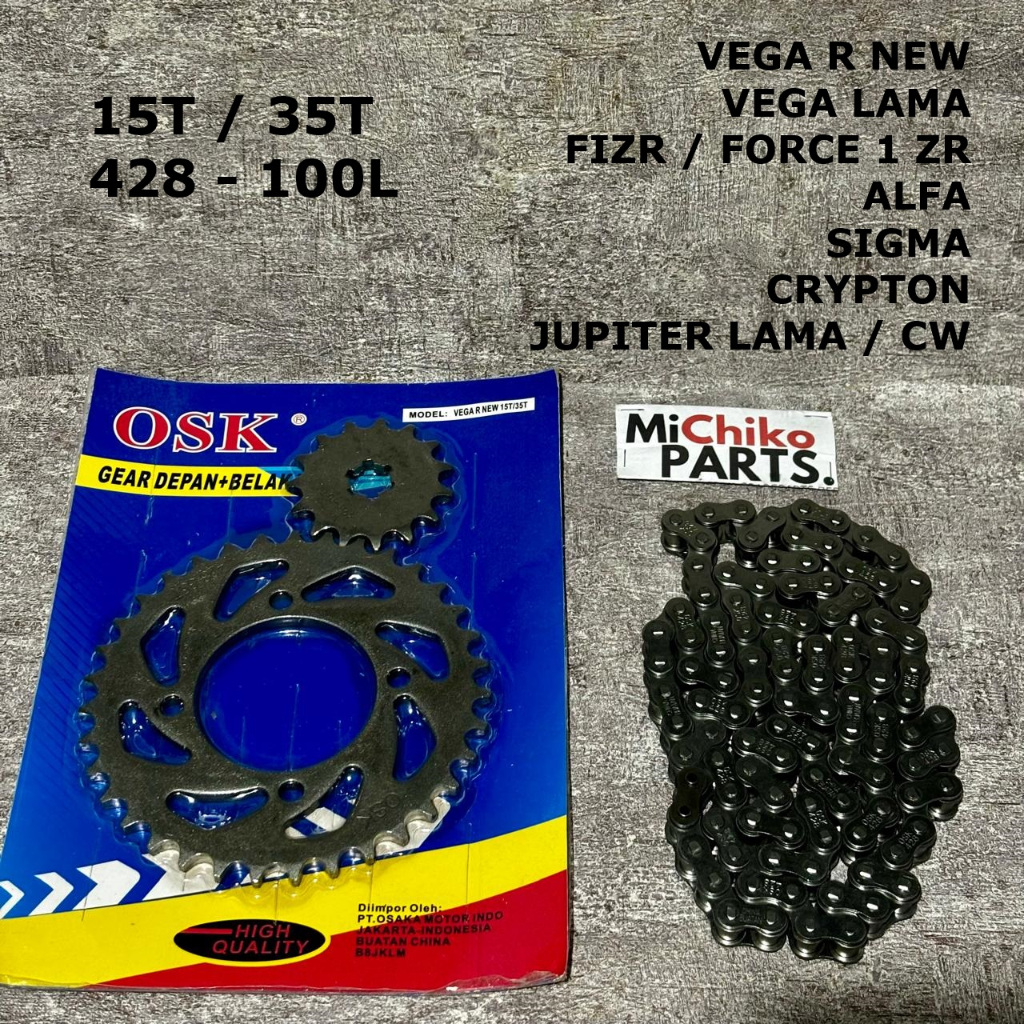 Gear Gir Set Rantai Rante Vega R New Lama Crypton Fizr F1zr Force 1 ZR Alfa Sigma Jupiter Z Lama CW 15T 35T 428 100 100L Poswan Foswan Fis Fiz R