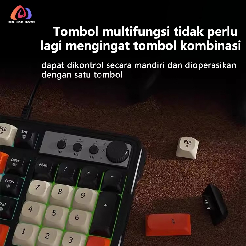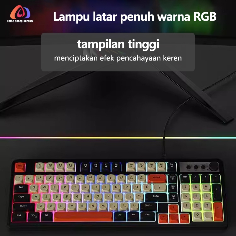 【+Kirim Lokal 12h】Keyboard Komputer USB RGB Gaming untuk Laptop/hp Silent Mechanical Feeling Full Size Three Sheep Netwo